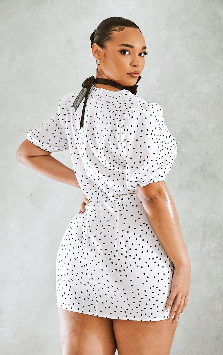 Give your wardrobe a seriously chic update with this plus white polka dot puff sleeve tea dress. This dress is brought to you in a white hue material and a polka dot design for a look we are loving. With a puff sleeve detail, this tea dress is perfect for those brunch plans with the dolls. Style with statement accessories and some clear heels to elevate the look to new heights.