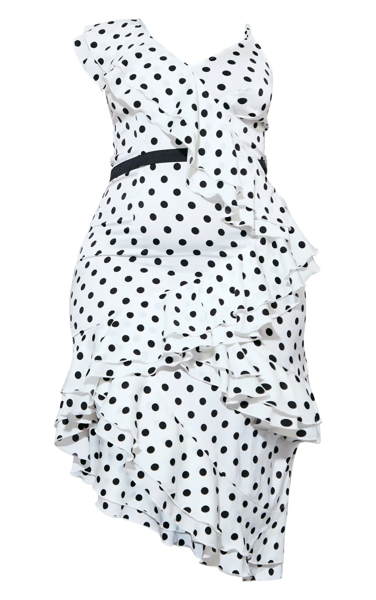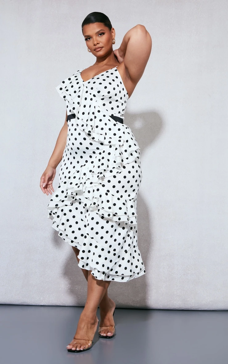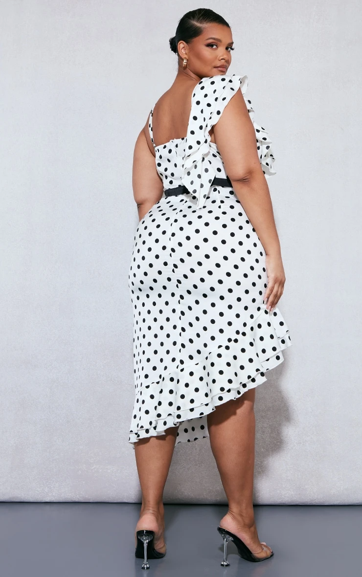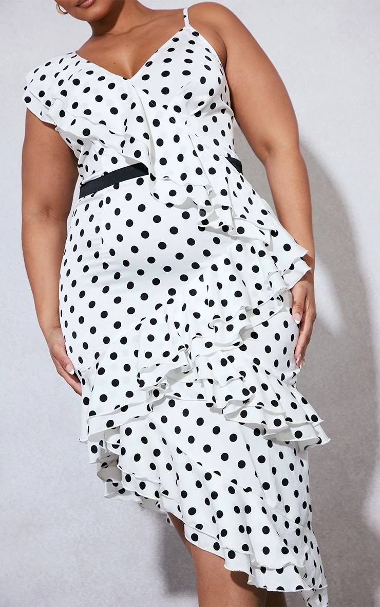 This plus white polka dot ruffle detail midi dress is here to banish any of your what to wear dilemmas. Brought to you in a white material with a polka dot design, we can’t get enough. From start to finish this midi dress will have you looking totally on-trend. With ruffle detailing, you are sure to be feeling confident. For a next-level look simply style with some clear heels and your fave accessories. It’s a yes from us doll.