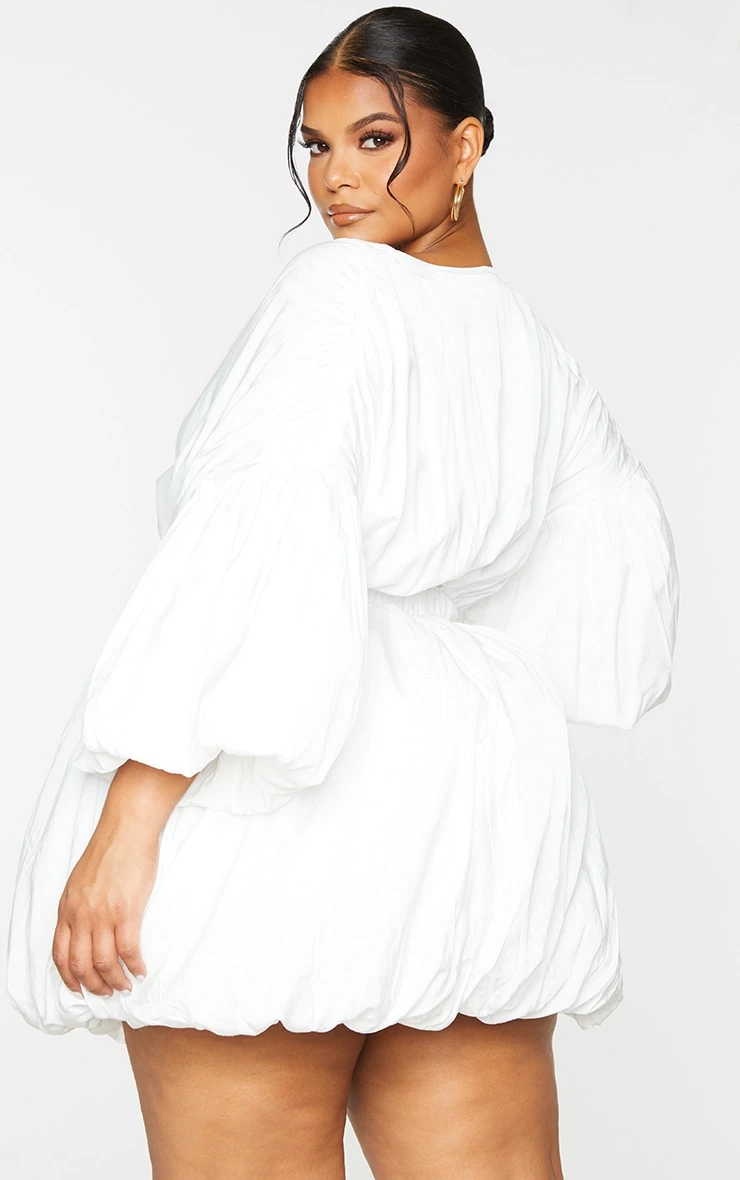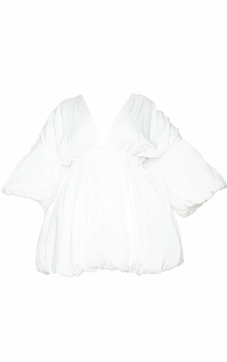 This shift dress is the ultimate showstopper. Featuring a white material with puff sleeves, a puffball hem design and a plunging neckline, we’re obsessed. Team this with a mini bag and clear strap heels for look that will turn heads.