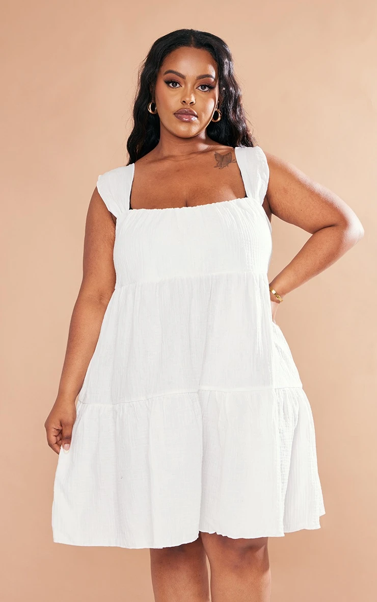 Level up your weekend vibe with this plus white textured tiered shift dress. Whether you have plans with the dolls or someone special, this plus shift dress is the only answer. With a white hue material, textured tiered design and a square neckline, what more could you ask for? For that weekend-worthy stamp of approval add strappy heels and your fave accessories.