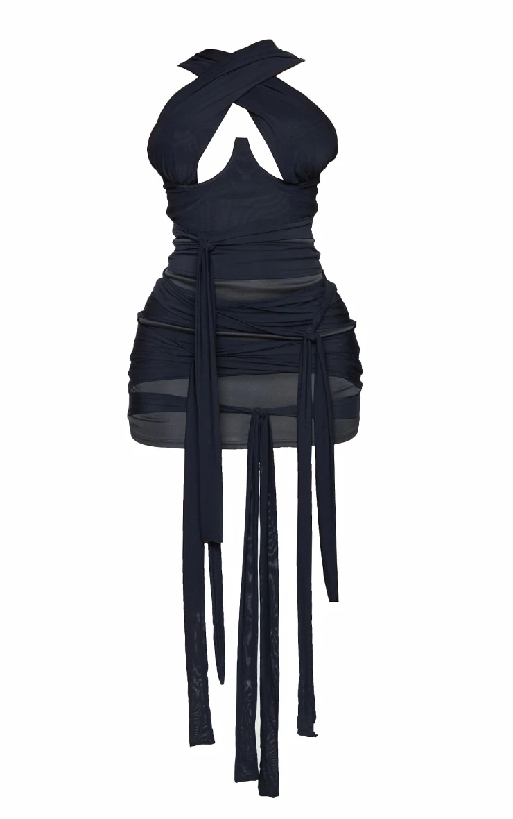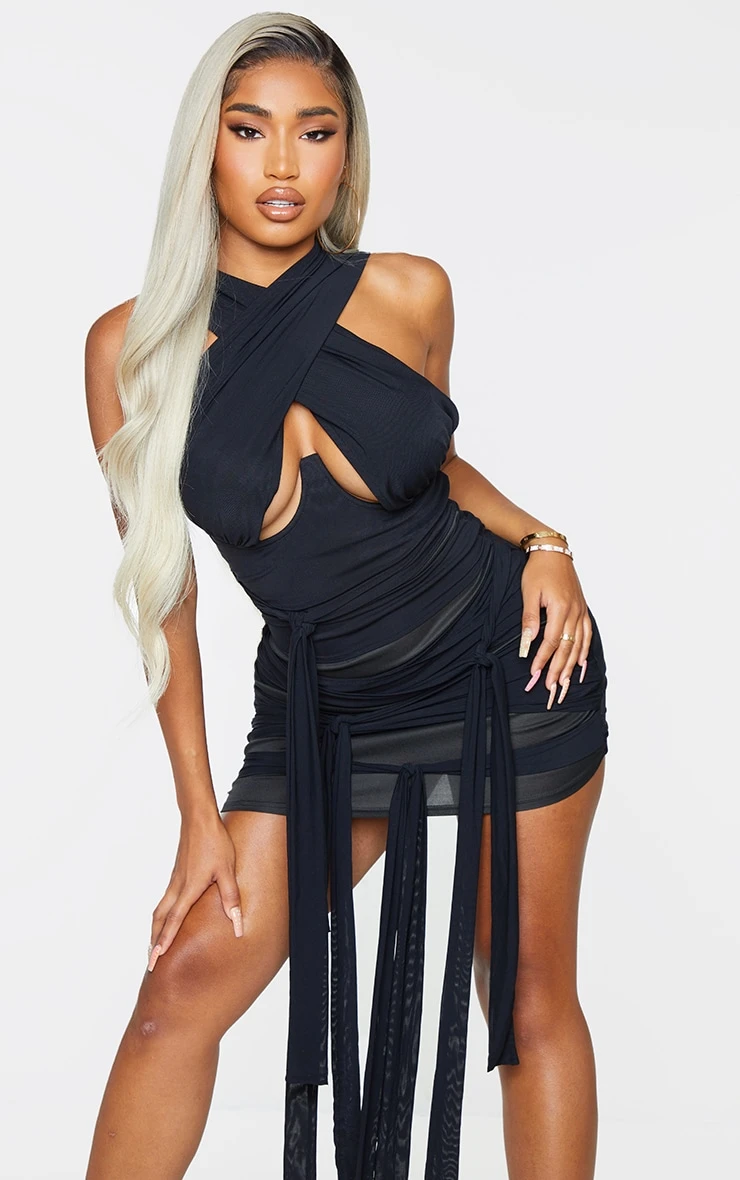 Your weekend outfit is finally sorted with this dress doll. Featuring a black mesh material with a neck tie design and a figure-hugging fit. We love this teamed with your fave heels and statement accessories.