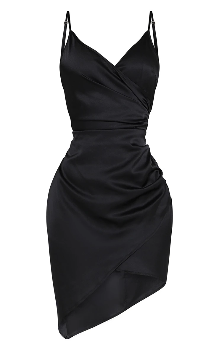 This LBD is an essential for the party season. Featuring a black satin fabric, wrap style to show off your killer curves and a flattering plunge neckline for the body confident. Team with hoops and strappy heels.