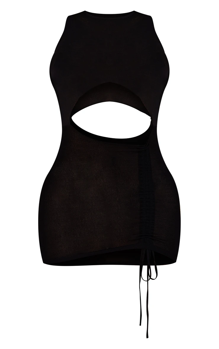 Amp up your weekend wardrobe with this little black dress. Featuring a black knit material with a cut-out design, ruched detailing and a figure-worshipping fit, what’s not to love? Style with barely-there heels, gold accessories and a green bag to complete the look we’re obsessing over this season.