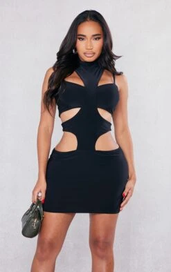 The weekend is round the corner doll and this shape black slinky extreme cut out bralet mini dress. Its black slinky material is seriously flattering whilst its extreme cut-out details are sure to show off your unreal figure. This shape mini dress is bringing all the chic vibes to your weekend plans. Team with a shoulder bag, clear heels, and gold accessories for a look that is sure to impress.