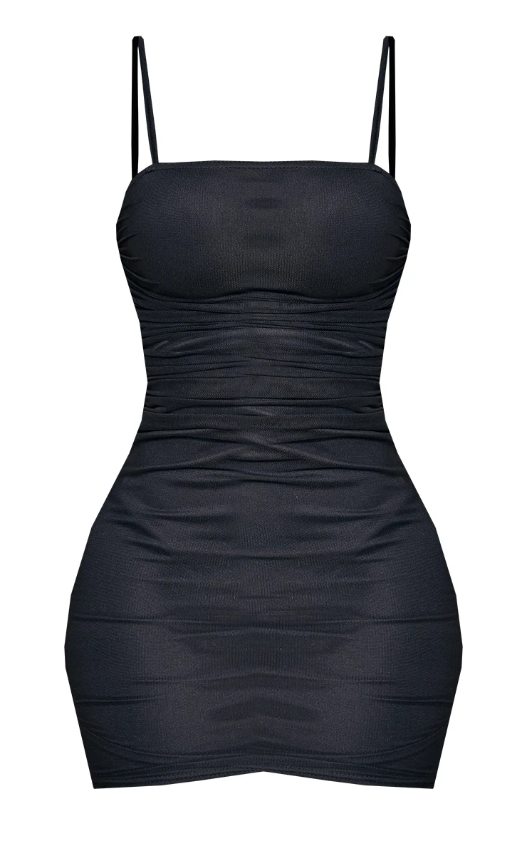 Keep your look simple but chic this weekend with this black bodycon dress, perfect for all those last minute going out plans. Featuring a black slinky material, thin shoulder straps and ruched detailing you can’t go wrong with this mini dress in a classic black style. A shape bodycon with ruched detailing accentuates your waist in all the right places. Just add statement earrings and strappy heels for a look we’re loving.