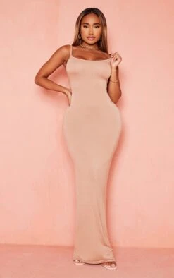 Switch up your style game with this unreal dress. Featuring a camel jersey material with a maxi length and a figure-worshipping fit. Pair with clear heels and gold accessories to elevate the look further.