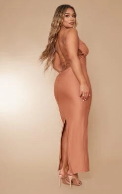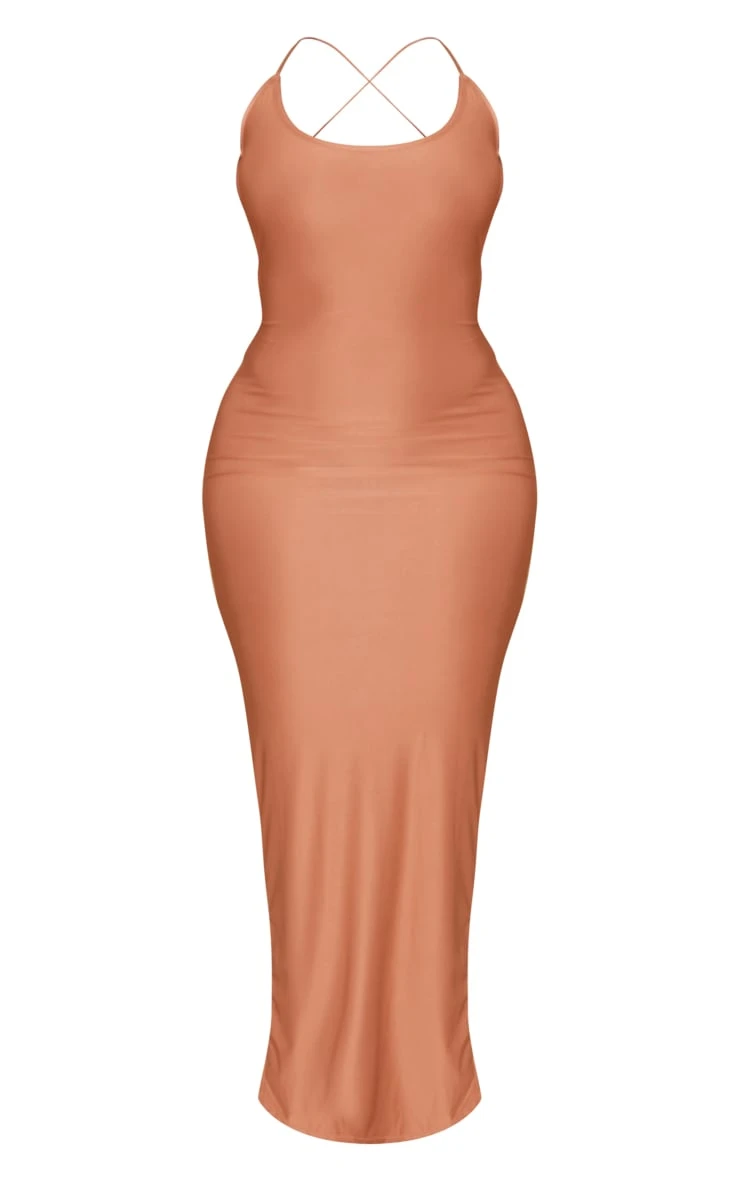 Make them stop and stare with this shape clay strappy back slinky ruched bum midaxi dress. This dress is made from a clay slinky material, you will be showing of your shape in all the right places. With a strappy back design and a ruched bum detail, this midaxi dress is perfect for those upcoming occasions. Team with some clear heels and your fave gold accessories to finish off the look.
