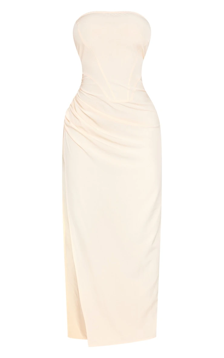 Give your weekend wardrobe the refresh it needs with this shape cream woven bandeau ruched side split midaxi dress. This midaxi dress is brought to you in a cream woven material with a bandeau design, ruched detailing and a side split, how could you ignore this statement piece? With it’s midaxi length and figure-hugging fit you wont go unnoticed doll. Style with your dreamy high heels and accessories for a look like no other.