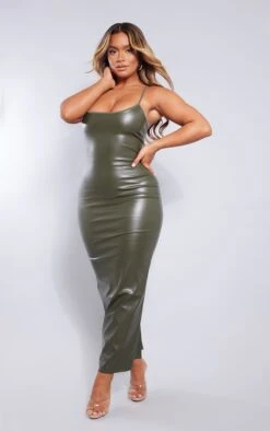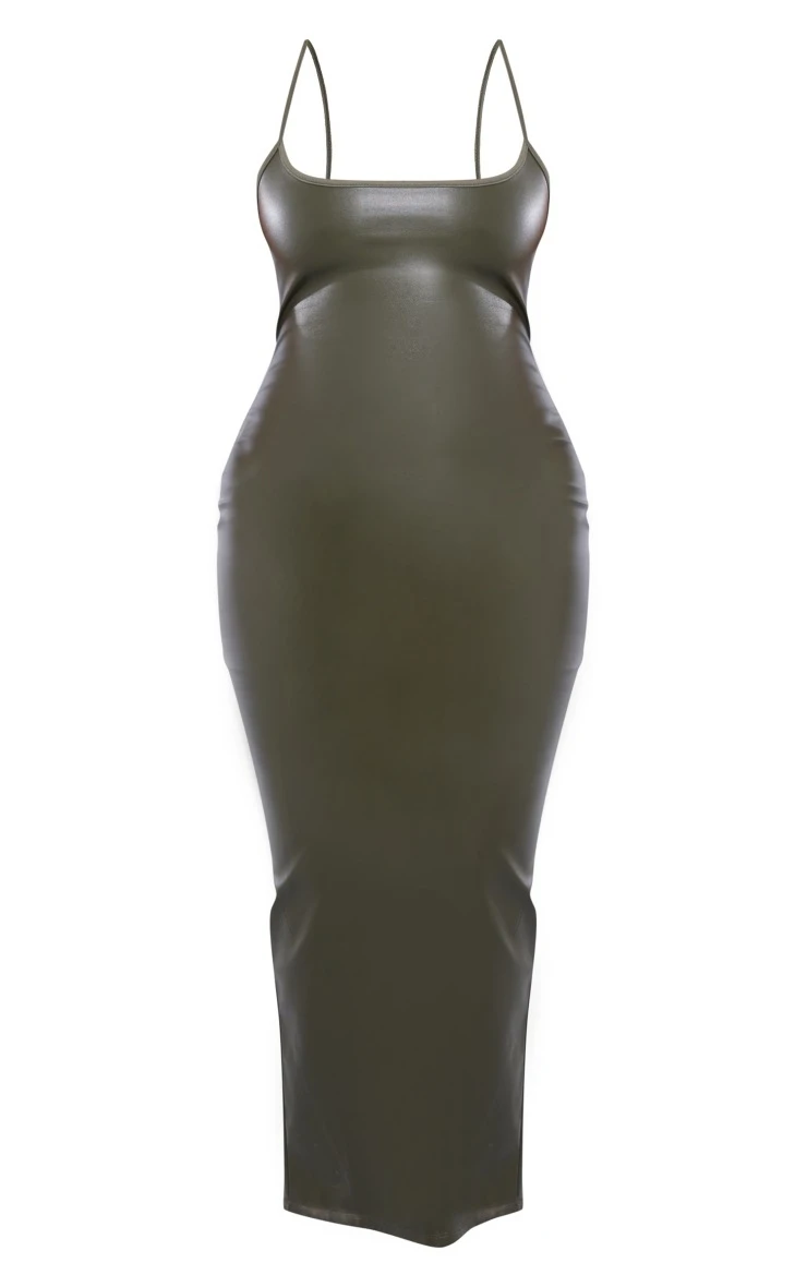 Keep things khaki this season with this staple dress. Featuring a khaki PU material with a strappy design, a midaxi length and a flattering fit, we are obsessed. Pair with high heels, gold accessories and a mini bag to seal the deal.