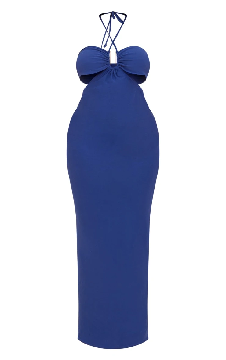We’re obsessed with this shape navy ring detail cut-out maxi dress for adding some glam vibes to your weekend plans doll. Whether you have a special occasion in the diary or just plans with the dolls, this shape maxi dress is the answer to all your what-to-wear dilemmas. With a navy hue material, a cut-out design, a halter neckline and ring detail, what’s not to love? Simply add clear heels and a shoulder bag for a dreamy finish.