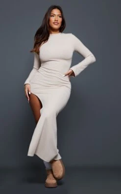 Become A/W goals this season with this maxi dress doll. Featuring an oatmeal textured material with a high neck and cut-out back detail. Simply style with comfy boots, a tote bag and a faux fur hat for effortless style points.