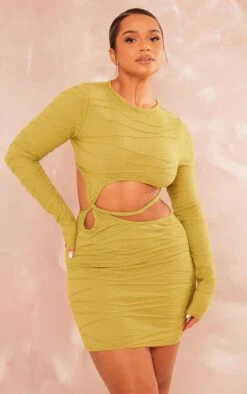 Show off your shape this season in this shape olive textured jersey cut out bodycon dress. This unreal dress is brought to you in an olive textured material with a cut out detail for a flattering fit that will have you feeling confident. With a bodycon design, you’ll be center of attention wherever you go. Simply style with a statement bag and your fave gold hoops to complete the look we are loving.