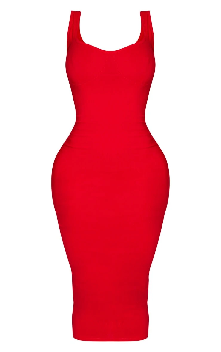 Make a bold statement in this simple but chic midi dress, super flattering and versatile to style up or down wherever you’re heading. Featuring a red material with cup detailing and a figure-hugging fit in a midi style, we are obsessed. A red dress is a must-have this season and this one is sure to have all eyes on you season after season. Just dress it up with barely-there heels and a mini bag for a date with the dolls.