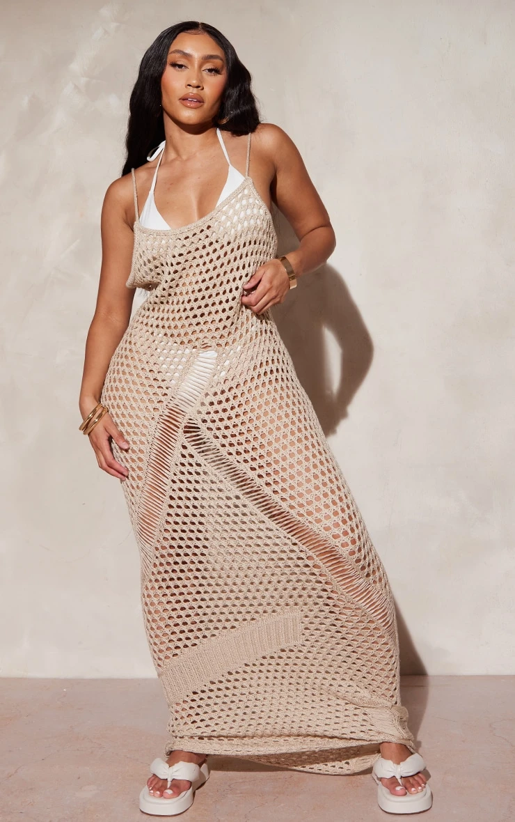 Get ready to have all eyes on you with this shape stone knit crochet strappy maxi dress, what’s not to love? With its stone knit material and crochet design, you’ll sure to earn all the likes with this dreamy piece. This dress has strappy detailing and a maxi length, it’s a yes from us. Finish off the look by pairing this dress with some chunky sandals, your fave bikini and a pair of statement sunglasses for a vacay look we are loving.