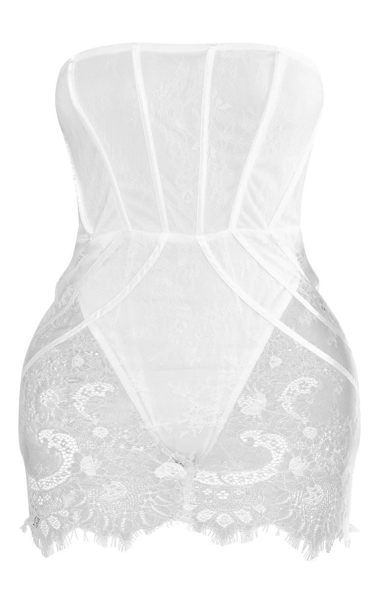 Get everyone talking this weekend with this shape white lace corset mini dress. Brought to you in a white lace material with a corset design and a figure-hugging fit, how could you say no? This shape mini dress is sure to turn heads for all the right reasons and give you that flawless look you have been searching for. Style effortlessly with clear heels, a mini bag and gold accessories for an instant luxe touch.
