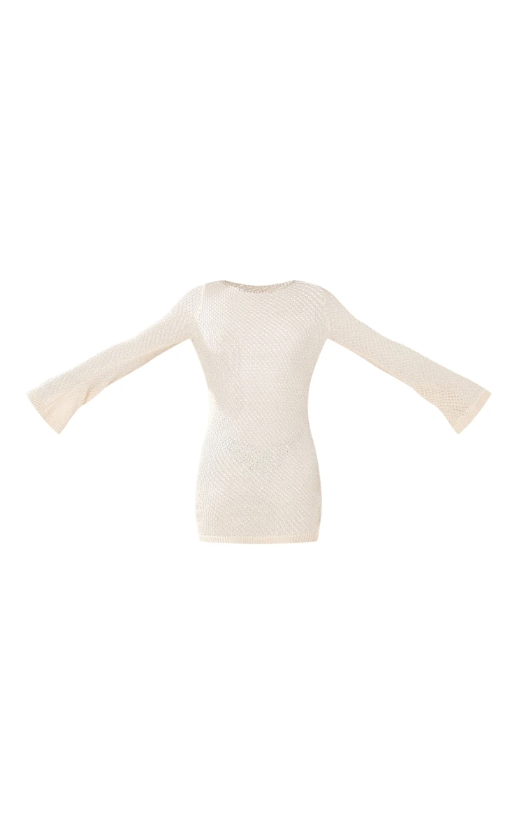 This season a tall cream long sleeve knitted mini dress is essential and we are loving this style. With a cream knitted material, this dress is sure to add some luxe to your wardrobe. This dress has a mini length and a long sleeve design, perfect for dressing up or down. Style with some slip on sandals and your fave gold hoops to elevate this effortlessly chic look.